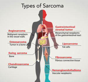 This type of cancer beings in the connective tissues which are the supporting tissues of the body. These include the bones, cartilage, tendons, and fibrous tissue that support organs. These can be further divided into 2 key areas: bone sarcomas and soft tissue sarcomas. Sarcomas are much less common than carcinomas. According to the National Cancer Institute, about 12,000 cases of soft tissue sarcomas and 3,000 cases of bone sarcomas are diagnosed in the U.S. each year.